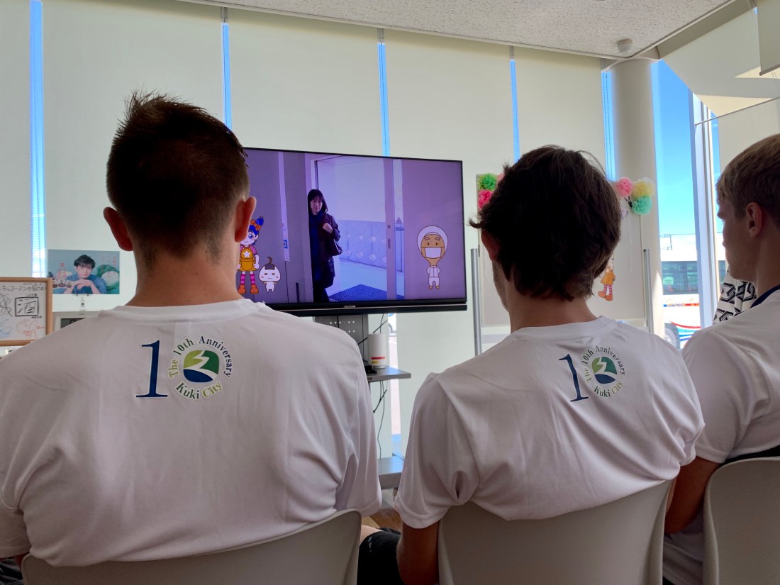 Nach einem für alle sehr ausgiebigen Frühstück in den Gastfamilien ging es vom Bildungsausschuss der Stadt Kuki aus zu unserem ersten Stopp heute in der Lebensmittelfabrik Kikkoman. Dies ist der weltweit größte Hersteller von traditionellem japanischen Essen. An der Tür der Fabrik mussten wir erstmal unsere Schuhe aus- und Hausschuhe anziehen, wie in jedem japanischen Haushalt. Begrüßt wurden wir mit einem sehr süßen und vermutlich auch lehrreichen Video über die Fabrik. Wahrscheinlich lehrreich, weil es auf japanisch war, aber die bunten Figuren fanden wir trotzdem alle toll.