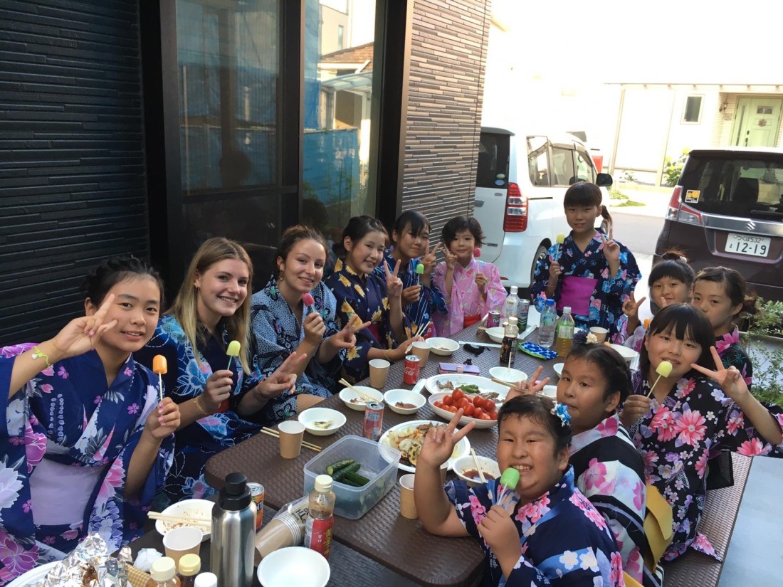 Wunschlos glücklich fuhren wir zurück nach Tsukuba, wo ein japanisches BBQ auf uns wartete. Um dabei unter den Volleyballerinnen nicht aufzufallen, zogen wir unsere Yukatas an.